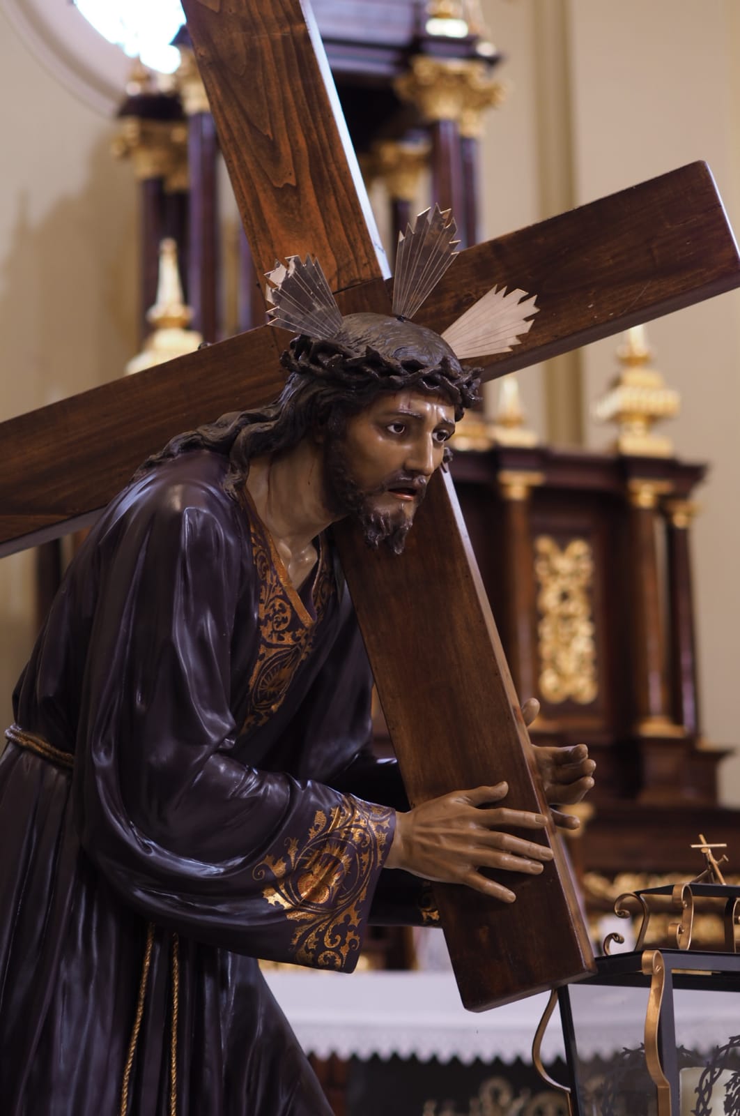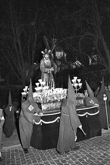 Hasta el año 1952 la imagen fue portada sobre andas, este año se decide construir un trono con ruedas el cual tuvo distintas remodelaciones y mejoras hasta el año 1969 cuando se dejó de realizar los desfiles de la semana santa a excepción de la procesión del silencio.